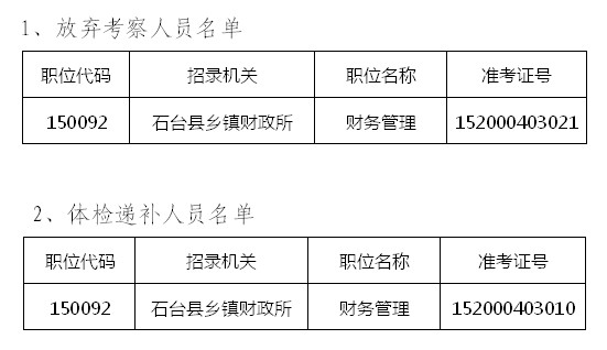 一、請遞補人員于2016年8月29日上班時間攜帶本人有效居民身份證和加蓋市公務員考錄辦公室公章的筆試準考證、與準考證同底一寸照片3張,到池州市人 力資源和社會保障局(地點:長江南路398號,波斯曼大廈十樓1011室,聯(lián)系電話:0566-3219330)辦理體檢確認手續(xù),逾期不辦理體檢確認手 續(xù)的視為自動放棄。