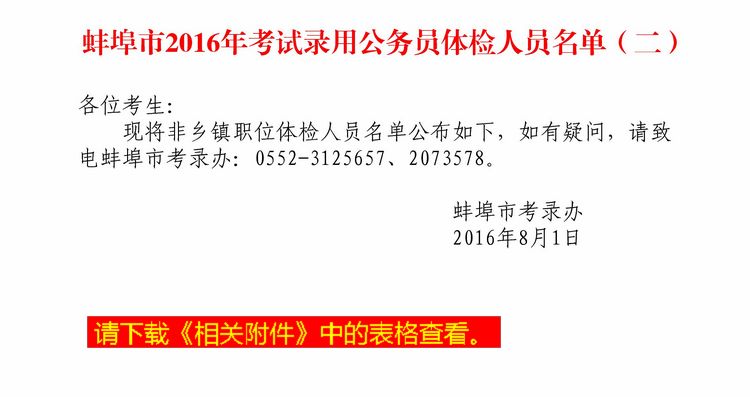 · 蚌埠市2016年考試錄用公務(wù)員體檢人員名單(二)