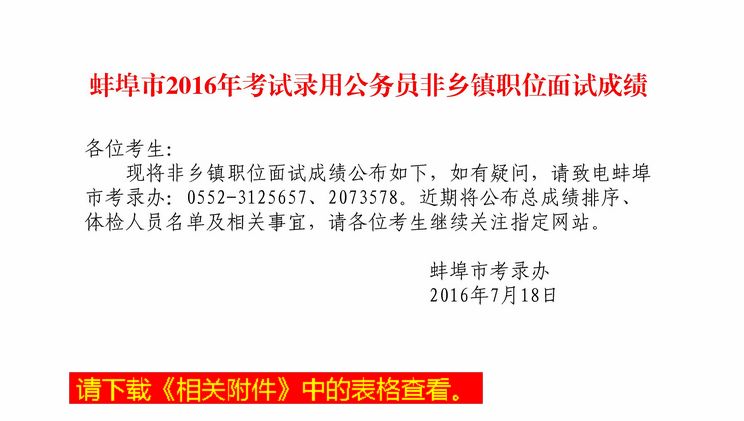 蚌埠市2016年考試錄用公務(wù)員非鄉(xiāng)鎮(zhèn)職位面試成績